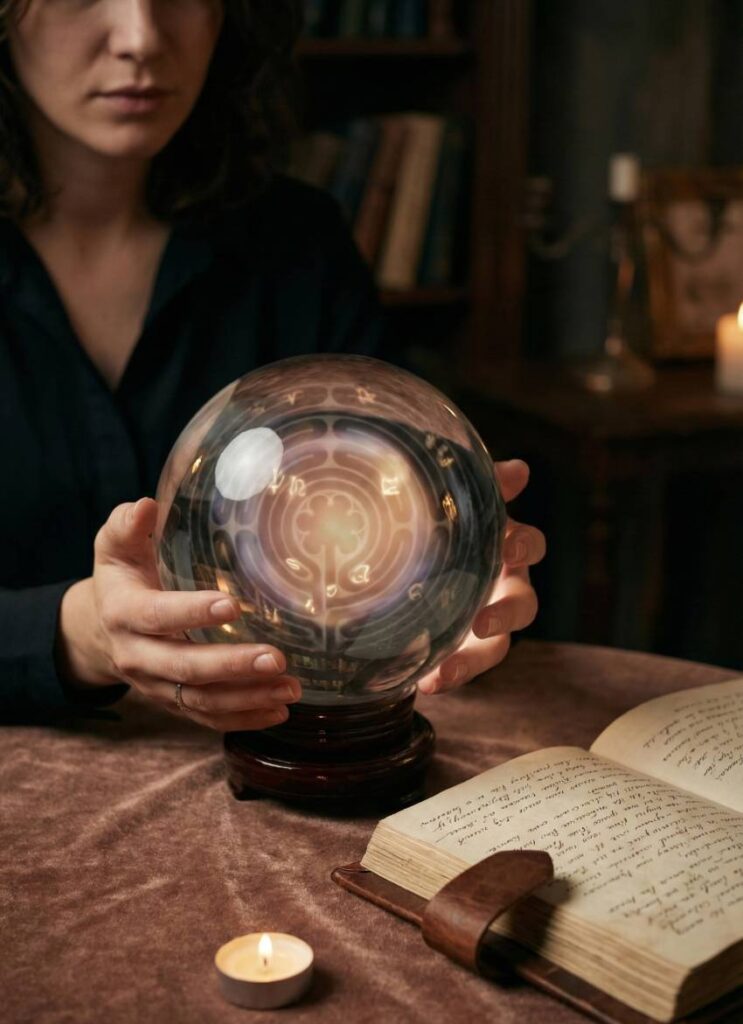 Crystal Ball Reading, or scrying, is an ancient practice where a reflective surface reveals insights not about predicting the future, but about uncovering your subconscious desires and needs in the present moment.