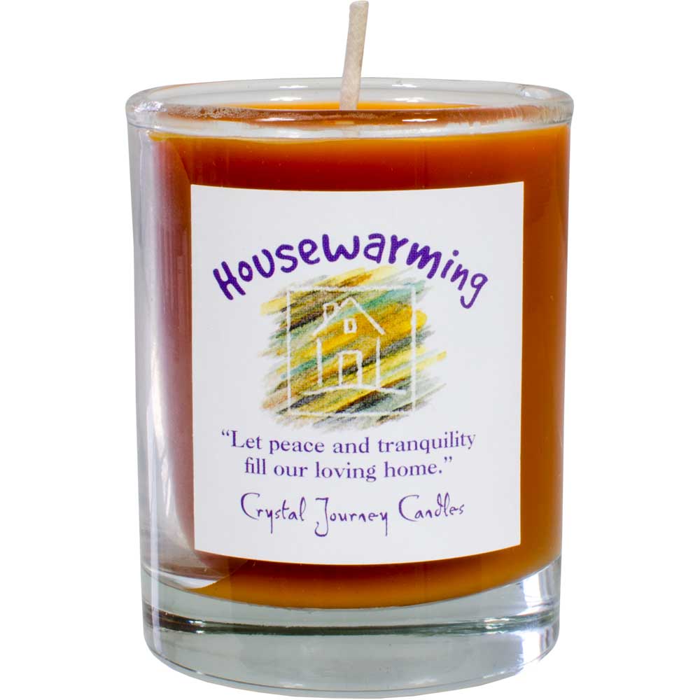 A great scented candle when you want to get in touch with your sacred space, allows us to enlighten our journey. Each Soy wax filled glass votive holder comes with an affirmation and inspirational message. Approximate burning time; 15 to 18 hours. Use Housewarming Soy Herbal Candle to create a home filled with love and caring. Use in combination with Love and Harmony to bless a new home. Clear glass votive holder filled with Cinnamon, Apple, and Orange candle scents. Made in New England, USA
